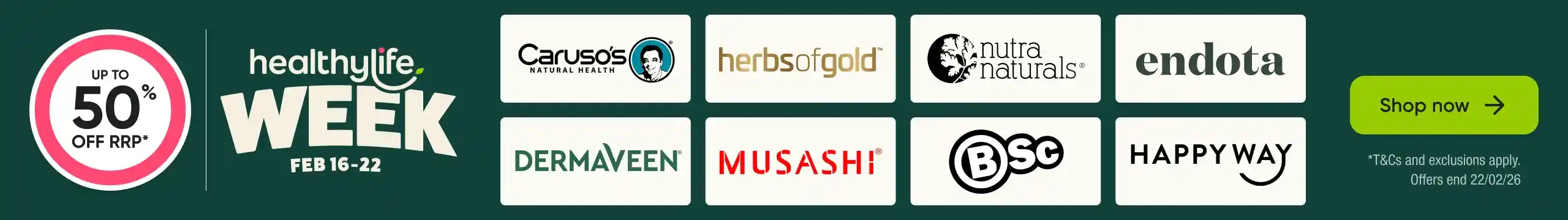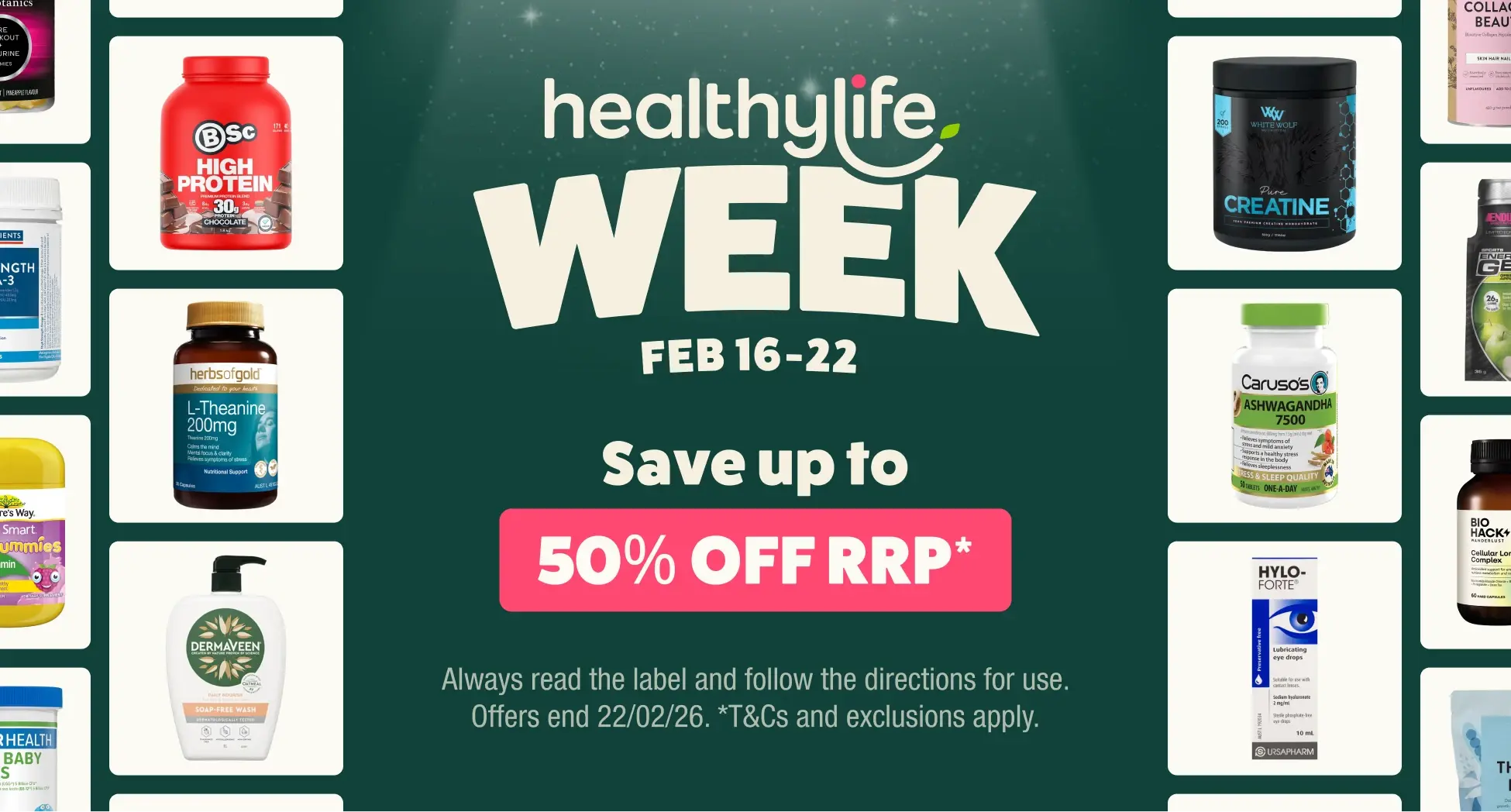 Terms and conditions: Offers end on 22.02.26 unless otherwise stated or while stock lasts. Any savings comparisons listed are off the products Manufacturer’s Recommended Retail Price (RRP). We reserve the right to withdraw or amend promotions at any time and to limit purchases to reasonable quantities. Despite our careful planning, we apologise if selected items may sell out due to unexpected high demand. Select offers are valid at participating Healthylife Pharmacy stores. Not all products or promotional offers are available at all stores. Call your local store to check product availability and pricing.