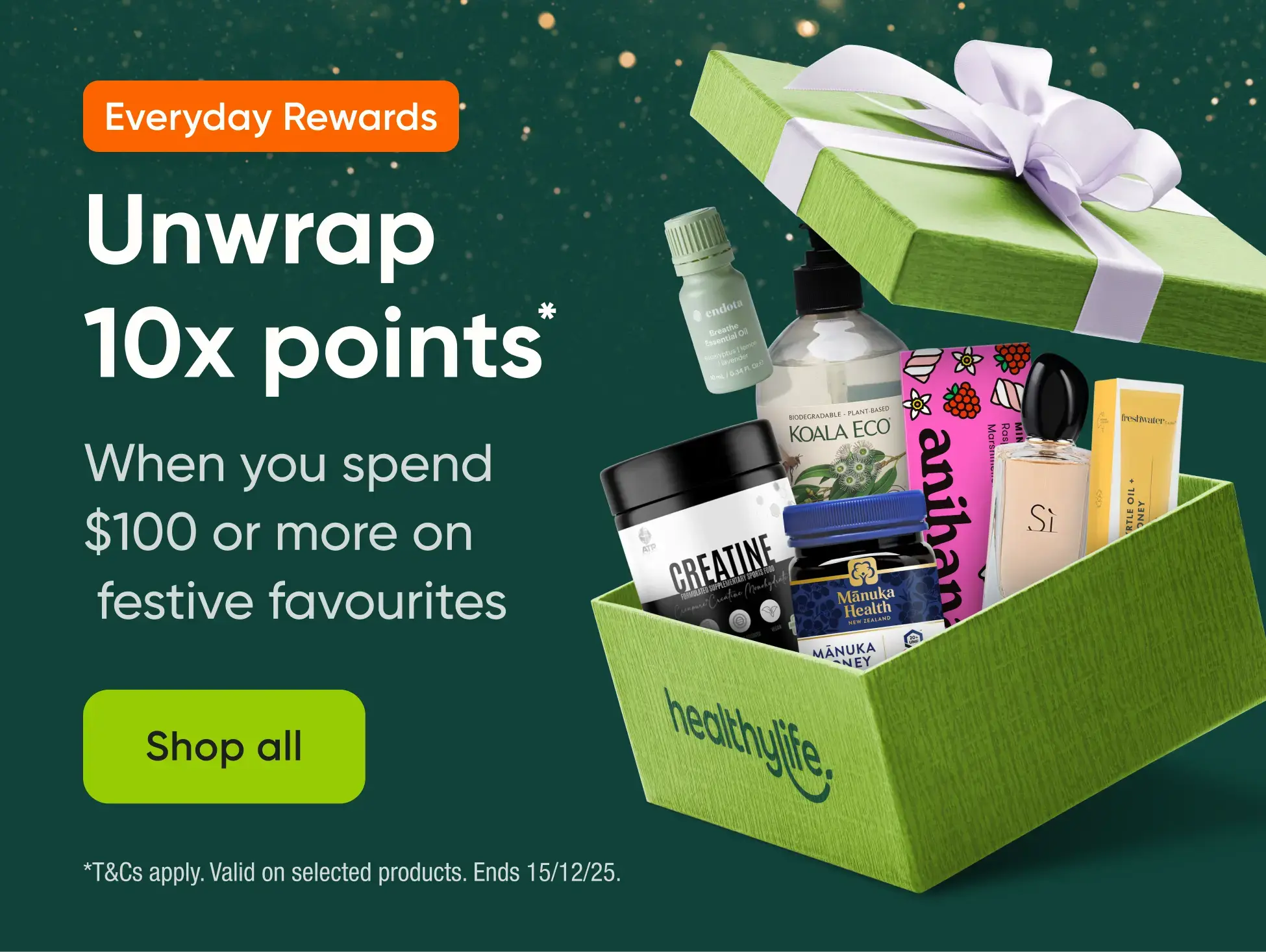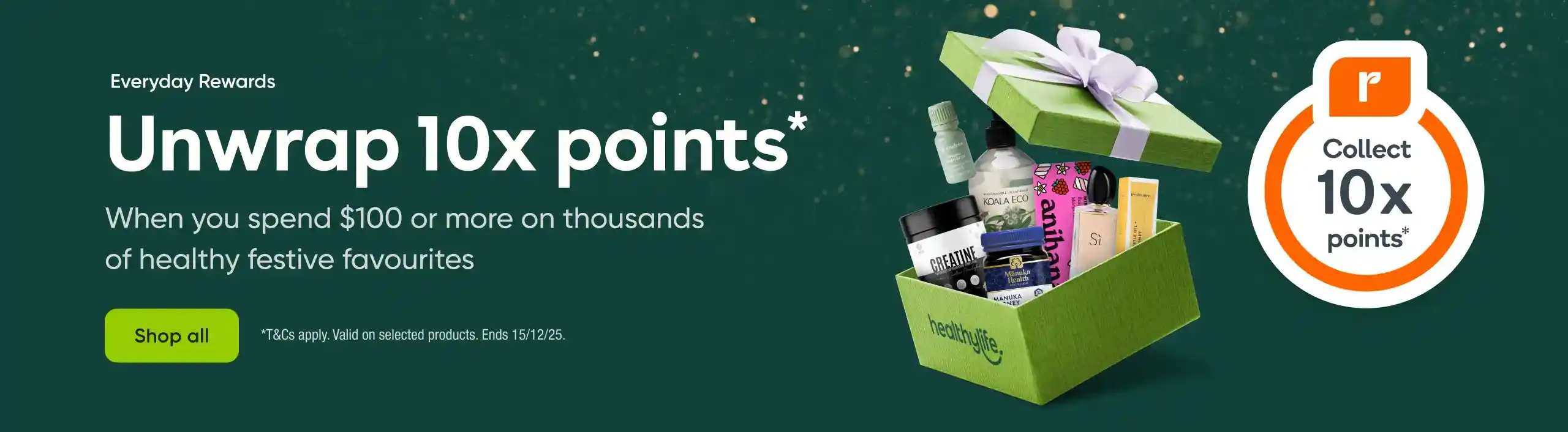 Offer is available when you shop on healthylife.com.au from 00:01 AEDT 02/12/2025 to 23:59 AEDT 15/12/2025 or while stocks last. To collect 1000 bonus points, you must purchase one (1) Manuka Health Manuka Honey product at healthylife.com.au during the offer period and link your registered Everyday Rewards Card at the checkout. See here for the qualifying Manuka Health Manuka Honey products. To enjoy your offer online, you must ensure your registered Everyday Rewards Card is linked to your Healthylife account at checkout prior to completing your transaction. This offer can be enjoyed one (1) time during the offer period. This means that you will only collect 1000 points, regardless of the number of participating Manuka Health Manuka Honey products purchased in your transaction. Everyday Rewards may reverse any points which have been allocated to you where your order is cancelled or refunded for the items in respect of which those points were collected. Your points can take up to 7 business days from the end of the offer period to be loaded onto your Everyday Rewards Card.